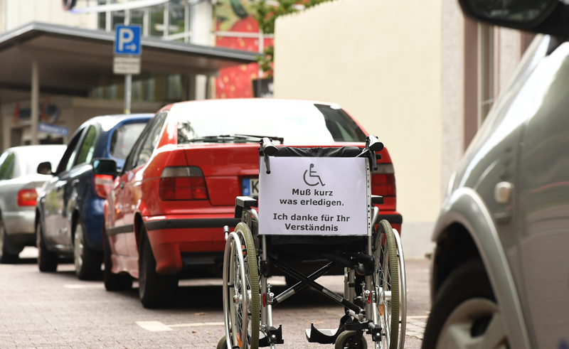 Sie müssen auch grad schmunzeln bei dem Bild? Was aber, Sie geraten selbst in so eine Verkehrssituation? Sie würden sich voller Unverständnis maßlos ärgern über die freche Art seinen Rollstuhl so zu parken. So aber geht es unzähligen Verkehrsteilnehmern mit Handicap, die vor einem widerrechtlich besetzten Behindertenparkplatz stehen. Als Begründung dienen oft Aussagen, wie die auf dem Schild, die das entschuldigen sollen.